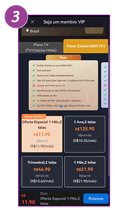 · Plano de Celular=VlP em Celular+Web, SEM TV