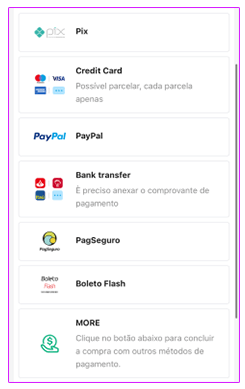 Escolha o pacote que desejar e o método de pagamento para concluir